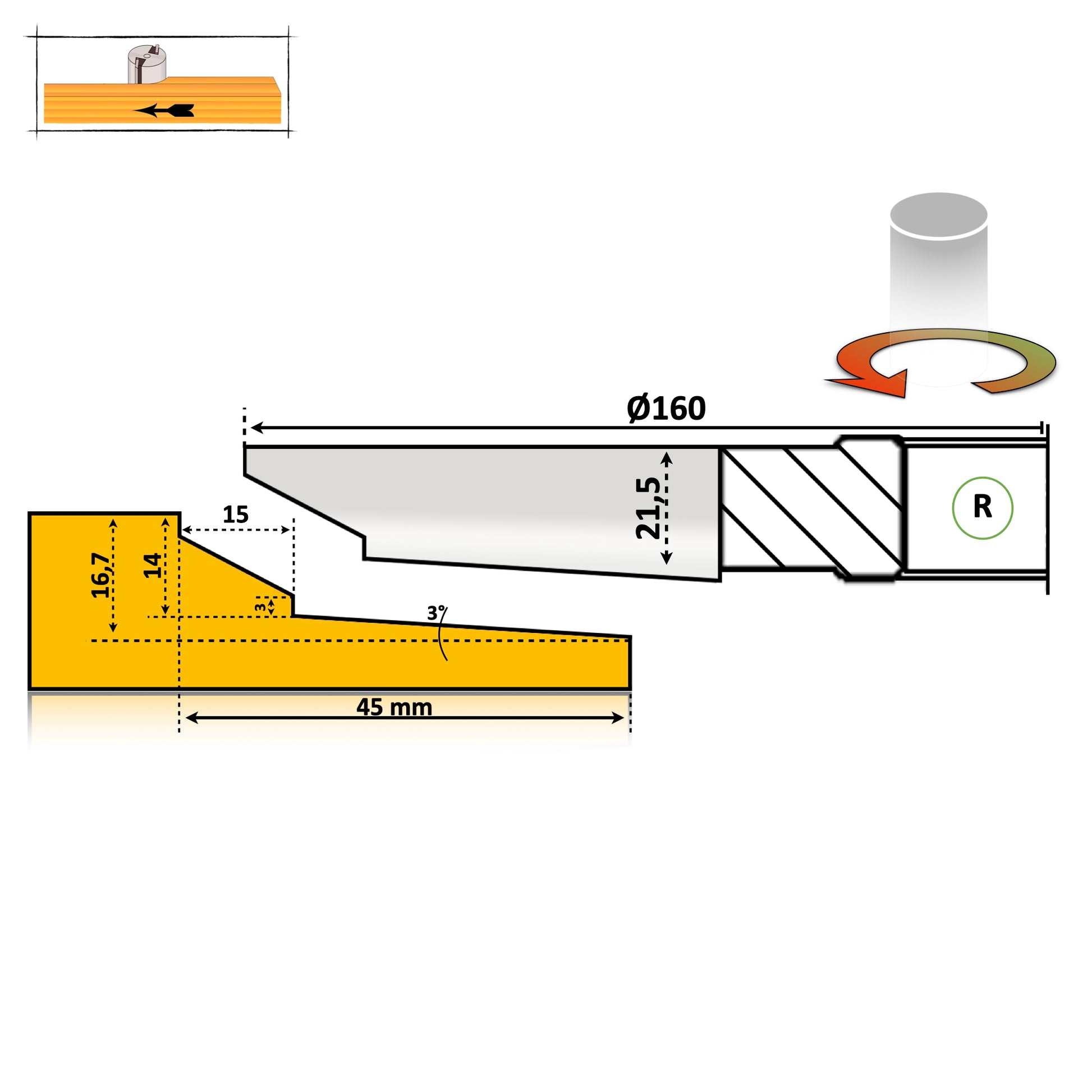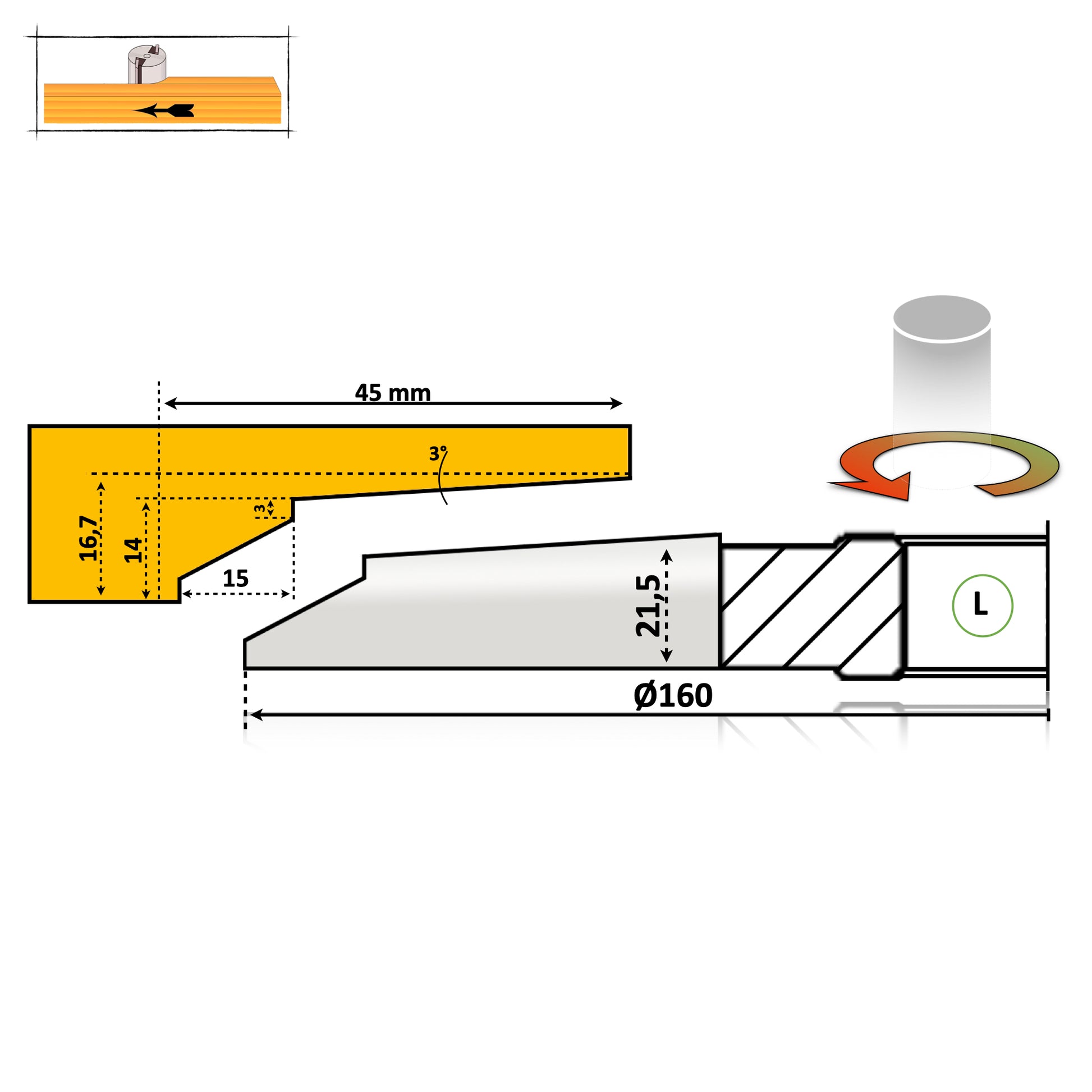 Профіль різака для дверних панелей №22 | Паяний з – HSS або Vidia