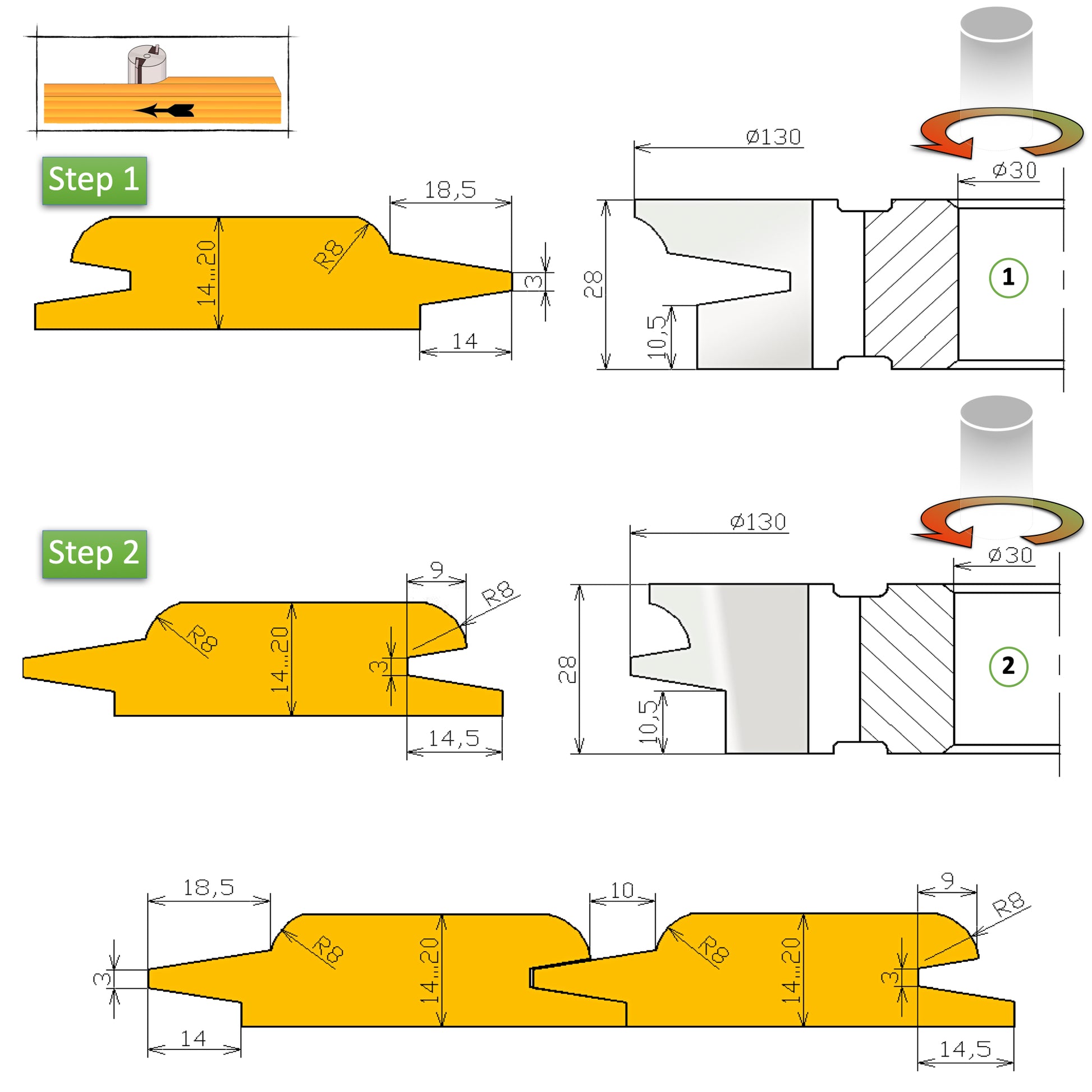 🔹 Розміри та розширена сумісність – З діаметром 130 мм та отвором 30 мм , цей набір із 2 фрез ідеально підходить для класичних фрез , легко інтегруючись у будь-яку столярну майстерню.