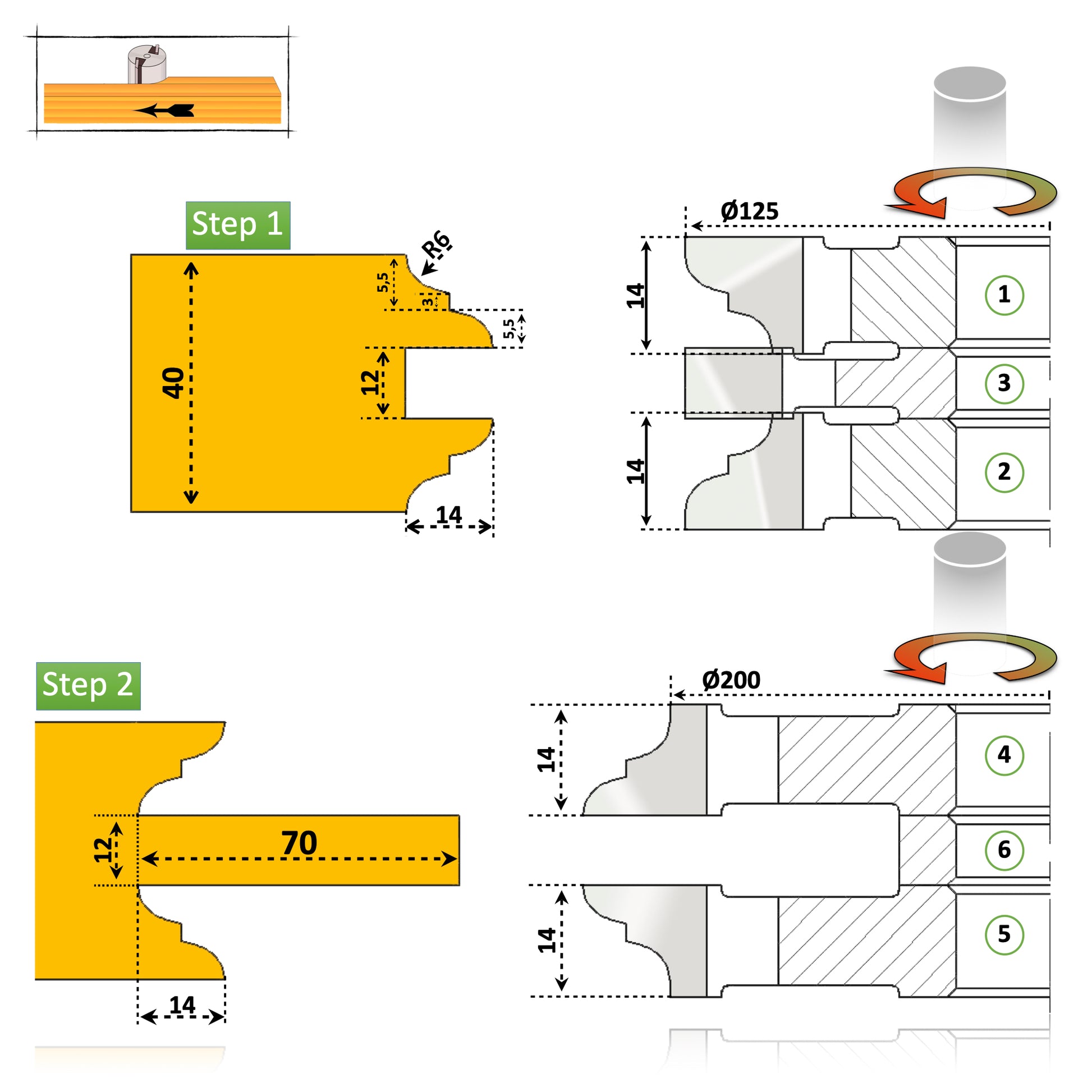 🔹 Оптимізована конструкція для дверей товщиною 40 мм – Геометрія різців дозволяє ефективно обробляти панелі та рами , гарантуючи ідеальне прилягання елементів.